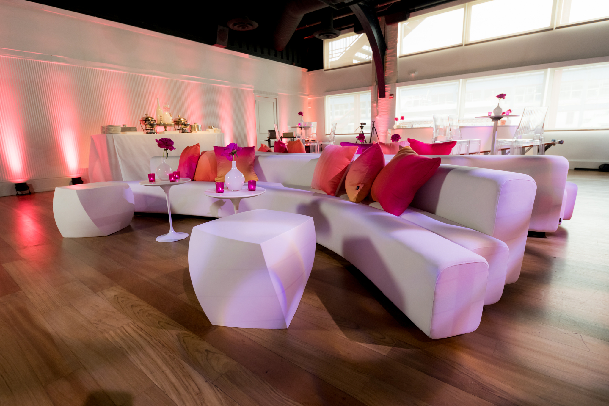 Families enjoy the comfort of a private suite, fully equipped with everything you need to get ready: make-up mirrors, a floor-length mirror, a steamer, an iron, beverages, and light snacks. The essentials of the event are all included—tables, chairs, linens, china, glassware, silverware, and staging—so you can focus on creating the perfect atmosphere.